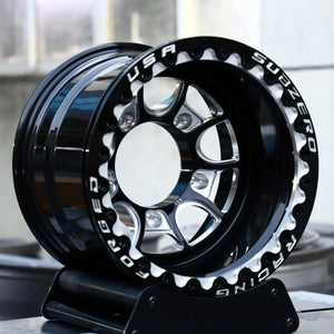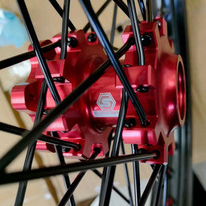 Custom-built sand car wheels and moto wheels that fit most Moto X and E-Moto platforms.